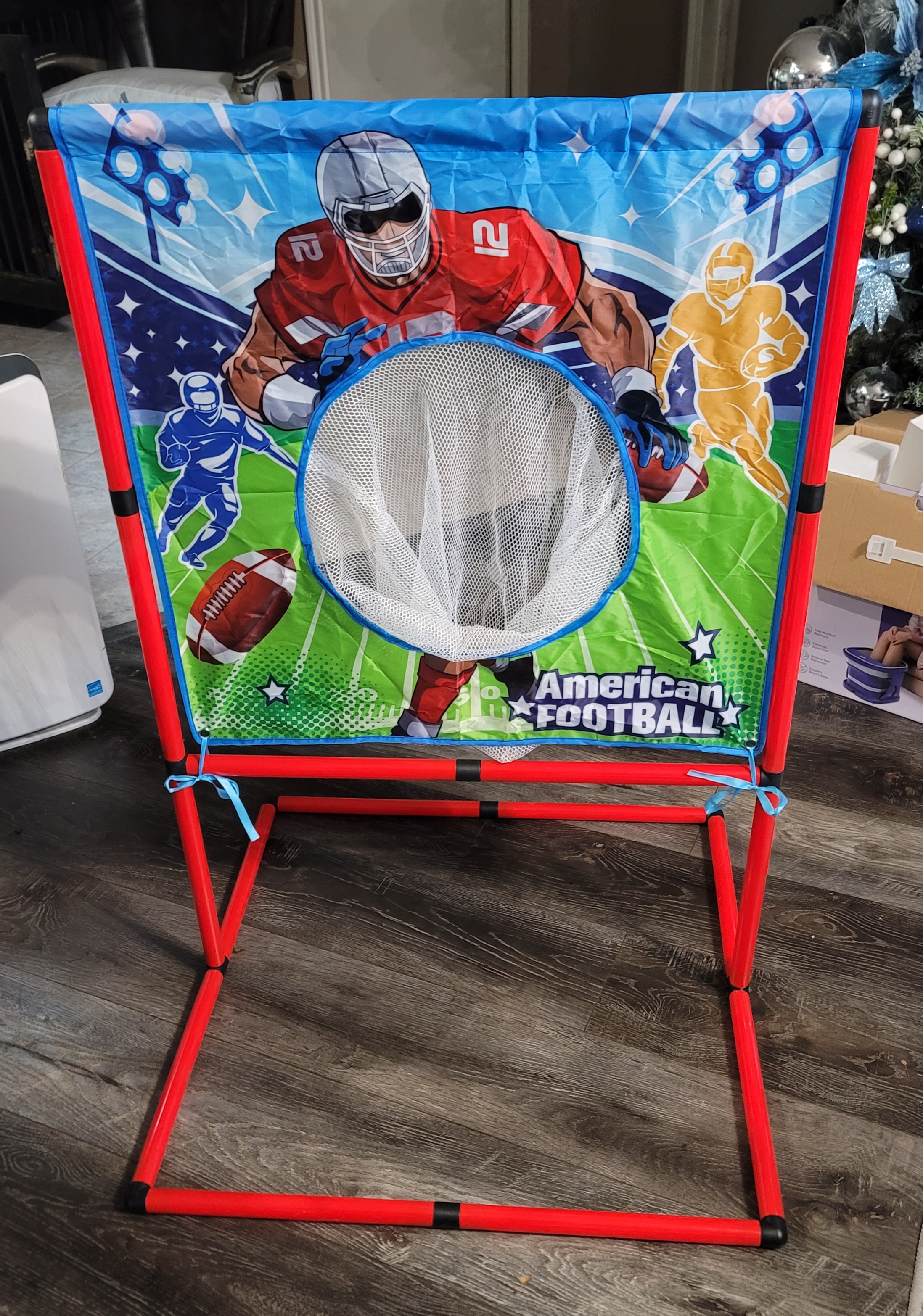 This portable football target is built for indoor and outdoor play, and comes with a weighted base for added stability. Play at the tailgate, in the backyard, or right in your home!