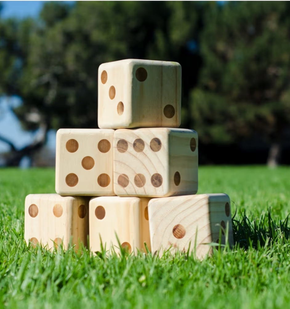 Toss the dice into the air and see how the numbers land. Add a bit of fun to your backyard party with the Giant Outdoor Dice. Made of 100% solid pine, these dice feature rounded, hand-sanded corners for easy and efficient rolling on any surface.