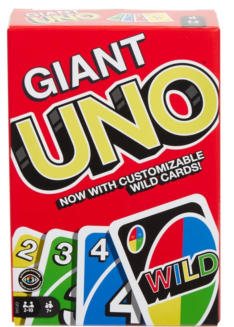 The only thing that could make the matching card game more fun- Giant-sized cards! Bigger IS better,Giant UNO card game is great for game nights or as a gift for any giant UNO fan 7 years old or up.