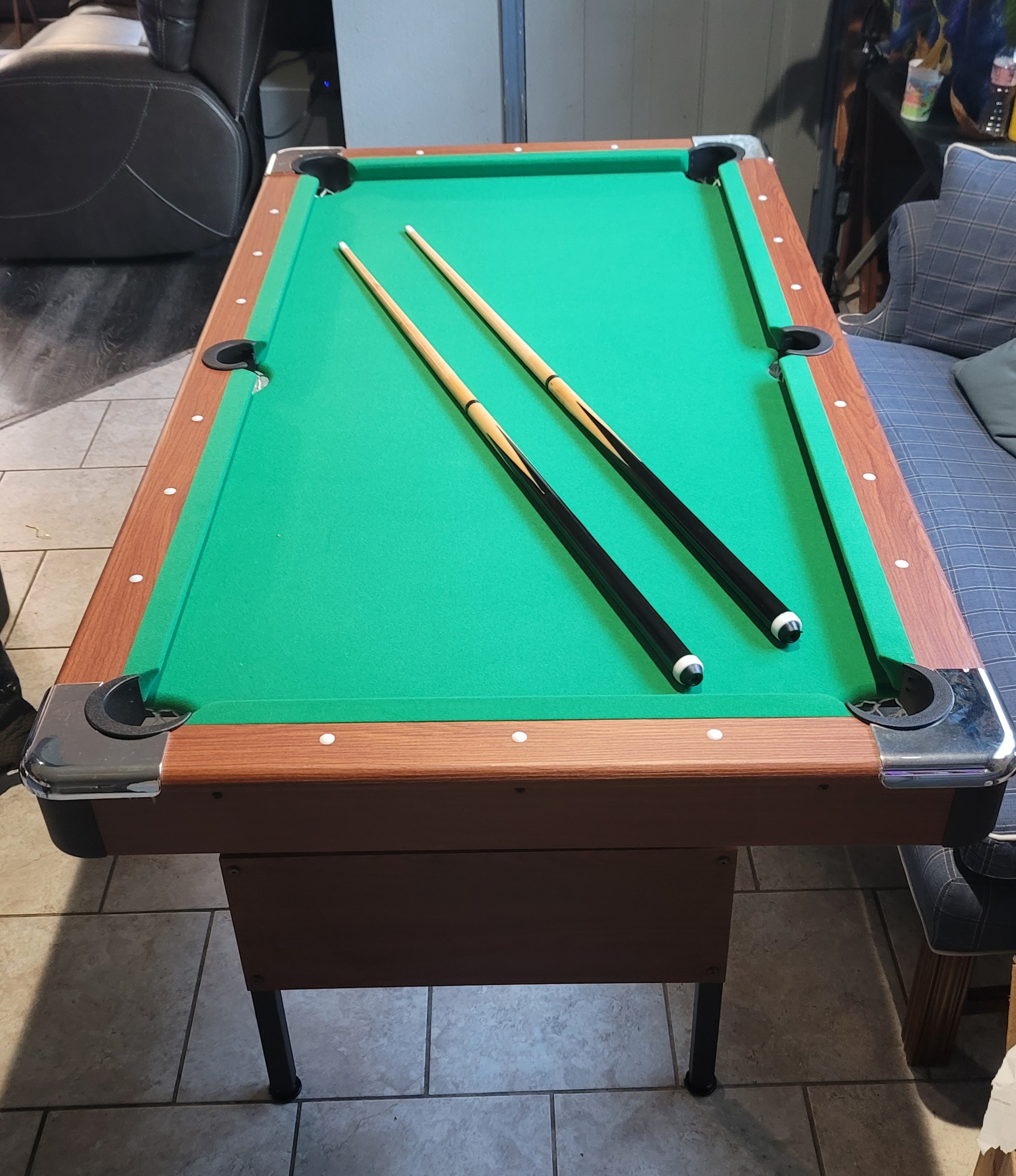 6 Ft Portable Pool Table, Adults Folding Billiards Tables for Game Room with Easy Foldable Storage, Includes Full Set of Billiard Balls, Cues, Chalk & Brush