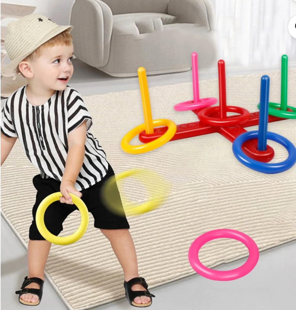 Includes ring toss target and 4 throwing Rings