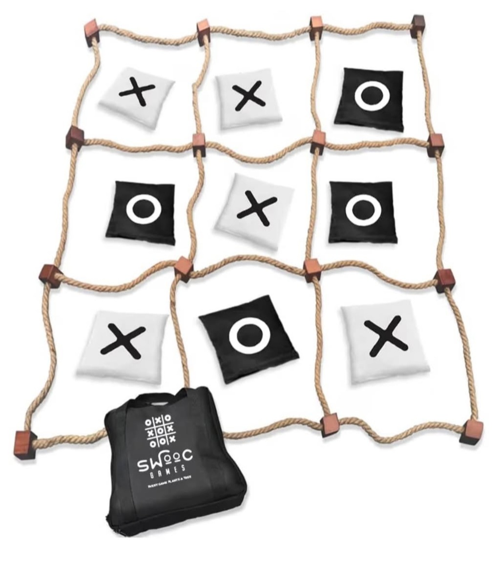 This is the jumbo version of the classic Tic Tac Toe game. Take the difficulty up a notch by tossing the X's and O's across the yard. Handcrafted from 100% New Zealand poplar and durable rope, it features rounded edges for safety and comfort. It’s 150x the size of the childhood classic!